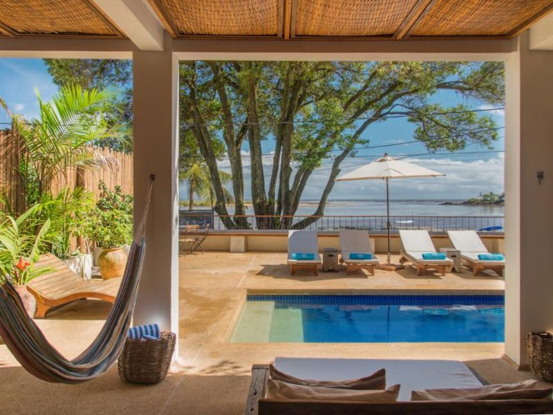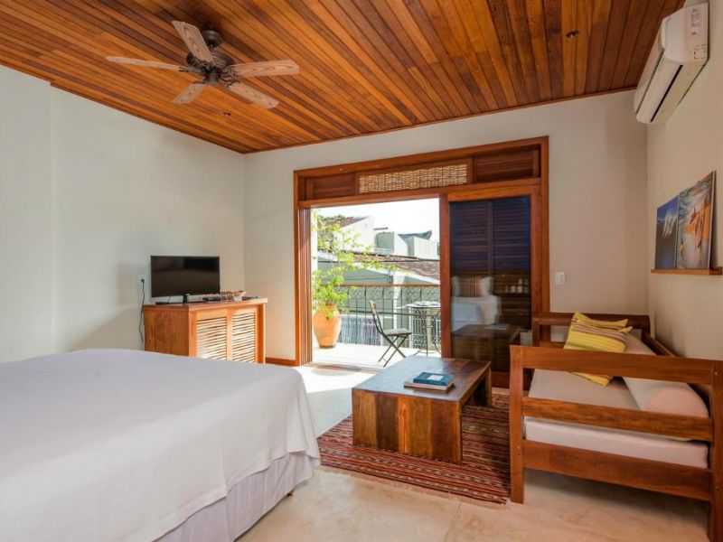 - Suíte Master Via Rio & Mar: Suíte ampla e especial. Localizada no primeiro andar possui uma das vistas mais bonitas e pitorescas de Itacaré. Caso esteja viajando com a família, esta é a única acomodação que permite ser conectada à um outro quarto.