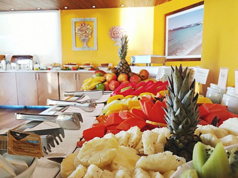 A refeição mais gostosa do dia está inclusa na hospedagem do Mar Brasil Hotel! O café da manhã é servido todos os dias das 6h às 10h.