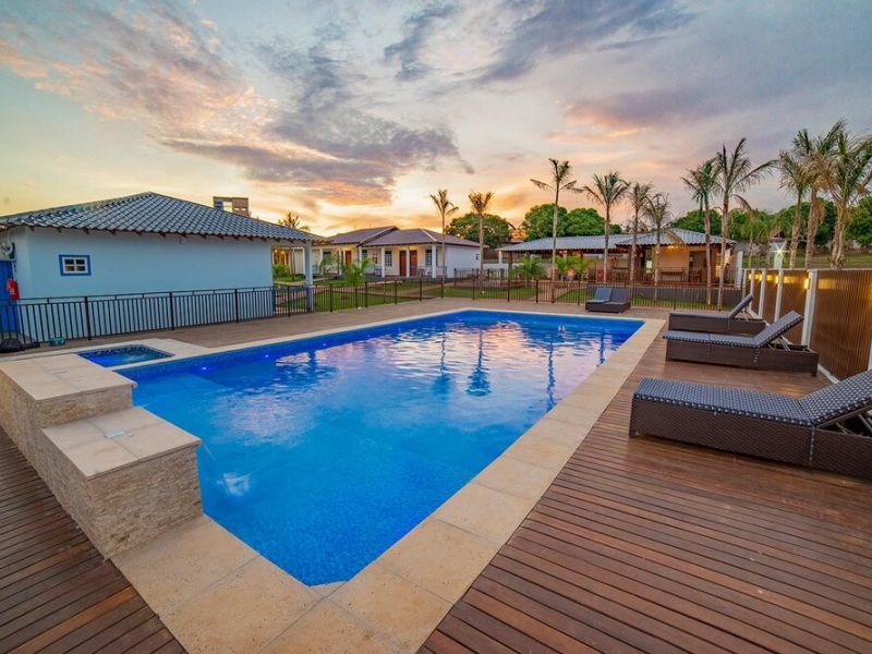 A pousada também possui duas piscinas, adulto e infantil, e hidromassagem estarão à disposição dos hóspedes.