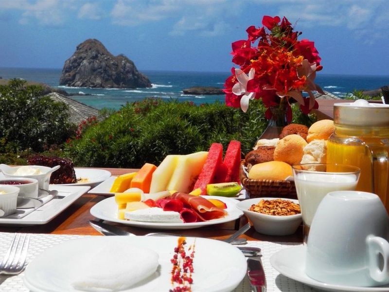 Um variado café da manhã à la carte é servido nos quartos na Pousada Maravilha.