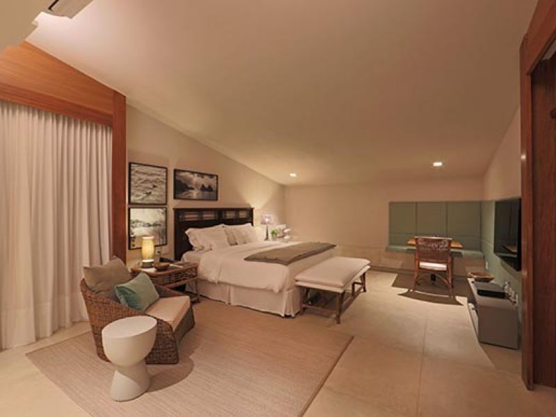 Bangalô Luxo: com uma área total de 74m², essa acomodação está localizada próximo à recepção e ao restaurante da pousada. Tem um amplo terraço individual e uma área de convivência com banheira de hidromassagem, além de mesas e cadeiras. Essa categoria possui 1 TV de 55”slim,Sky HD TV, sinal de wi-fi, cama king size, ar-condicionado Split, frigobar, isolamento térmico e acústico, além de um banheiro duplo. Acomoda até 4 pessoas confortavelmente no mesmo ambiente sem divisórias.