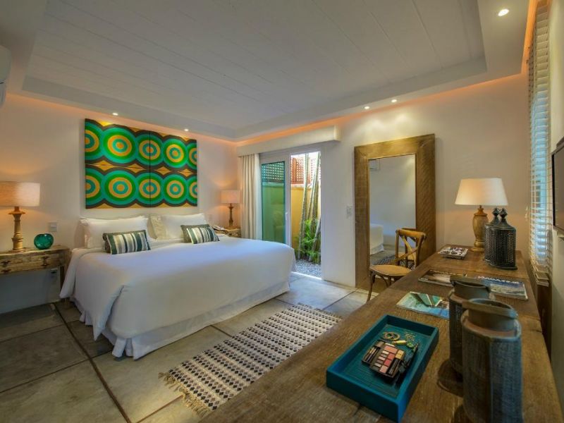 As suítes também trazem essa decoração especial com muito conforto e comodidade. Elas estão divididas em cinco categorias (Suíte Master Frente Mar, Suíte Premium Frente Mar, Vila Frente Mar, Vila com Banheira e Classic) e todas possuem TV, frigobar, secador de cabelo e cofre. O acesso à internet é gratuito e está disponível em todas as áreas sociais do hotel.