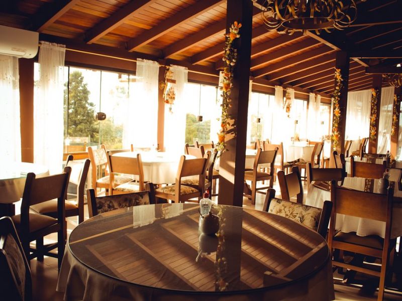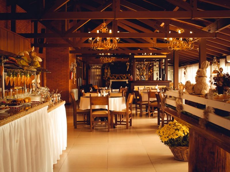 O restaurante do hotel funciona das 12 às 22 horas; em períodos de baixa temporada de terça a domingo. O serviço é com pedido à la carte, podendo ser entregue no Bangalô, e se desejar nas salas de jogos e recreação, piscina ou no restaurante.