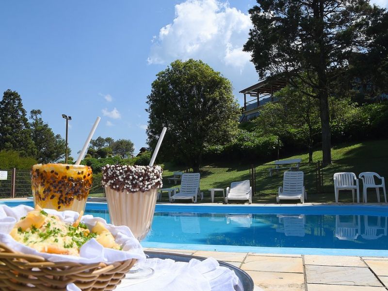 O diferencial do café da manhã do Bangalôs é que todos os insumos (frutas, verduras e legumes) são feitos no hotel – uma prática saudável que encanta os hóspedes pelo marcante sabor natural e fresquinho dos produtos.
