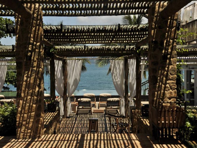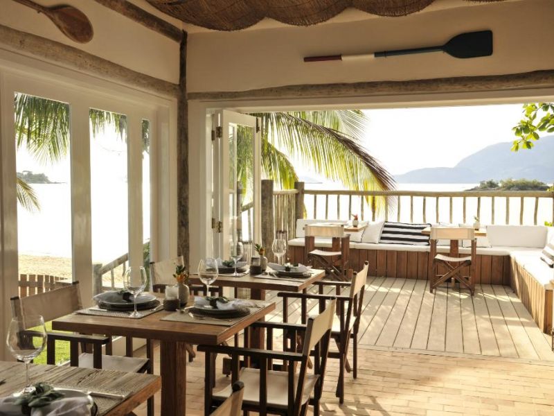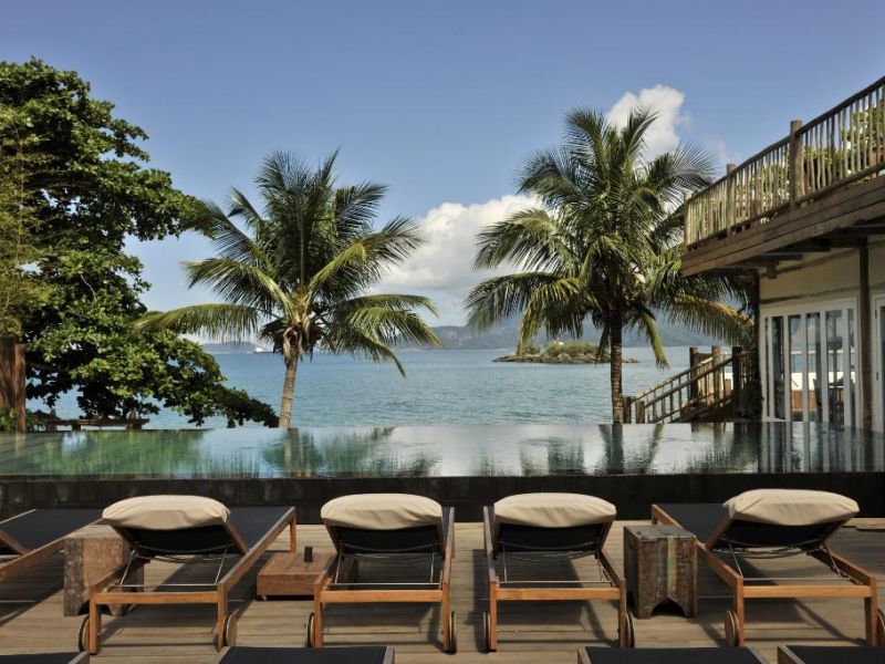 Suíte Maranta: As Suítes Maranta estão acima do encantador jardim de mini guaimbês, criando um ambiente tranquilo, de ar puro e sons da natureza. Possuem varanda de onde se pode contemplar a vista para uma das mais exclusivas praias da Ilha.